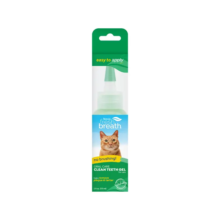 Mantén la salud bucal de tu gato con TropiClean Fresh Breath Gel Dental Sin Cepillado. Diseñado para facilitar la higiene dental de tu felino, este gel no requiere cepillado, lo que lo convierte en una opción conveniente y sin estrés. Su fórmula ayuda a combatir el mal aliento y a mantener los dientes y encías de tu gato limpios y saludables. Con una presentación de 59 mL, es la solución perfecta para el cuidado diario de tu mascota.