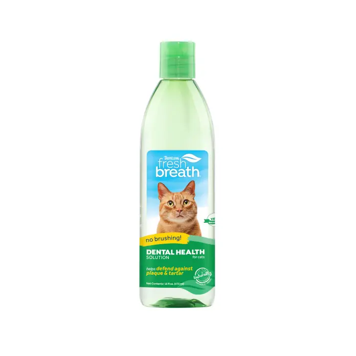 Mantén la salud bucal de tu gato con la Solución de Higiene Dental Fresh Breath de TropiClean. Diseñada específicamente para gatos, esta solución de 473 mL ayuda a refrescar el aliento y a mantener una boca limpia y saludable. Confía en TropiClean, la marca líder en el cuidado dental para mascotas.