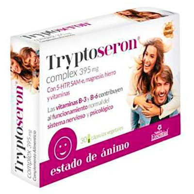 Indicaciones: Tryptoseron Complex 395 mg es un complemento alimenticio realizado a base de triptófano, SAM-e, vitaminas y minerales, que ayuda al sistema nervioso y psicológico. Las vitaminas B3 y B6 contribuyen al funcionamiento normal del sistema nervioso y psicológico.