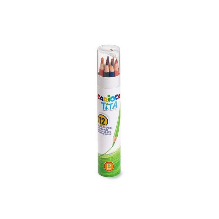 Carioca Tita Mina Lápices de Colores 3 mm Tubo Cartón 12 Colores Surtidos + Sacapuntas