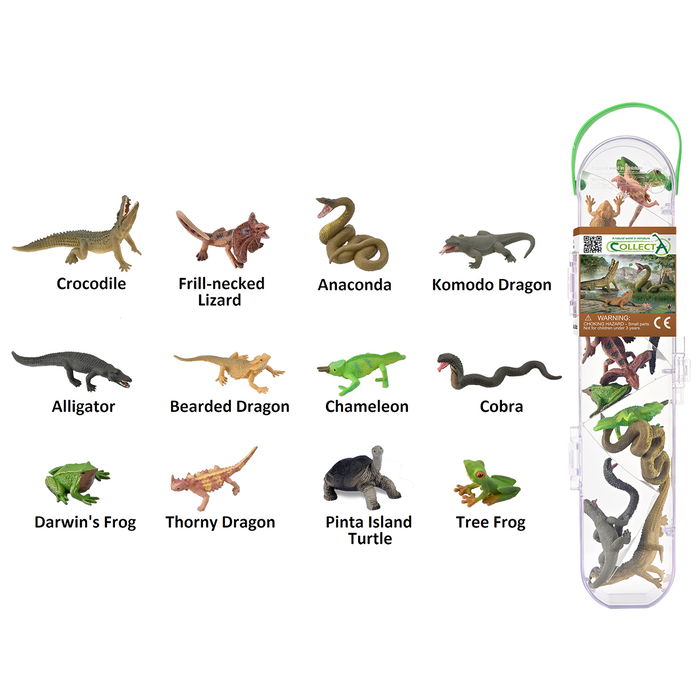 Estuche de PVC transparente que contiene una representación de reptiles y anfibios.