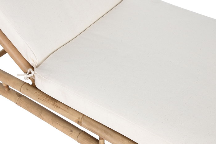DKD Home Decor Tumbona de Jardín y Terraza con Cojín Desenfundable, Bambú y Algodón, Color Marrón Crudo, 211 x 75 x 36 cm