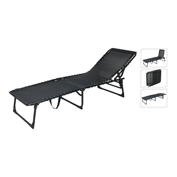 Tumbona plegable metálica color negro. plegable de 3 vías, tamaño 190 x 56 x 86 cm, con respaldo de 5 posiciones, peso máximo de carga 110kg