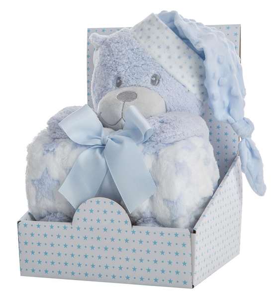 Peluche Oso Azul 28 Cm Con Manta Coralina 100X75 Cm En Caja - Modelos surtidos