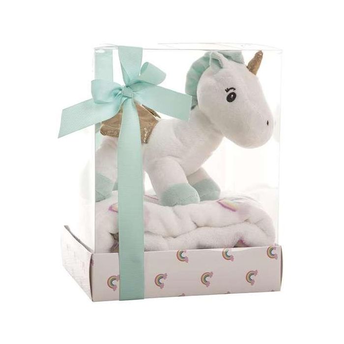 Creaciones Llopis Peluche Unicornio 26 cm con Manta Coralina 90x75 cm - Modelos Surtidos