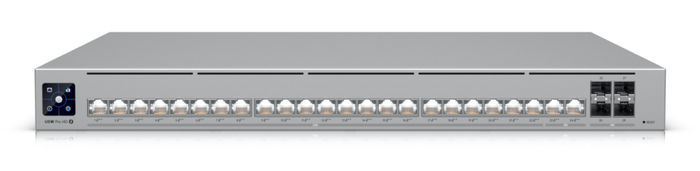 Ubiquiti UniFi Pro HD 24 PoE. Tipo de interruptor: Gestionado, Capa del interruptor: L2/L3. Puertos tipo básico de conmutación RJ-45 Ethernet: 2.5G Ethernet (100/1000/2500), Cantidad de puertos básicos de conmutación RJ-45 Ethernet: 22. Tabla de direcciones MAC: 32000 entradas, Capacidad de conmutación: 230 Gbit/s. Estándares de red: IEEE 802.1x. Conector eléctrico: AC/DC. Energía sobre Ethernet (PoE). Montaje en rack, Factor de forma: 1U