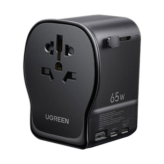 UGREEN Adaptador de Viaje GaN 65W Universal Carga Rápida USB-C/A, Enchufes USA/EU/UK/AU/CN - Compatible con MacBook, iPhone, Samsung