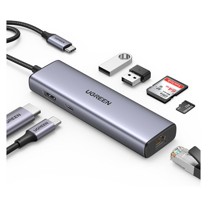 Ugreen USB-C to 2*USB3.0+HDMI+RJ 45+SD&TF+PD port Hub