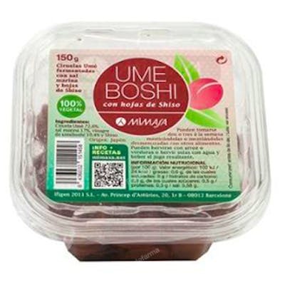 Composicion: Ciruela umé 72,6%, sal marina 17%, vinagre de umeboshi 10,4% y shiso.