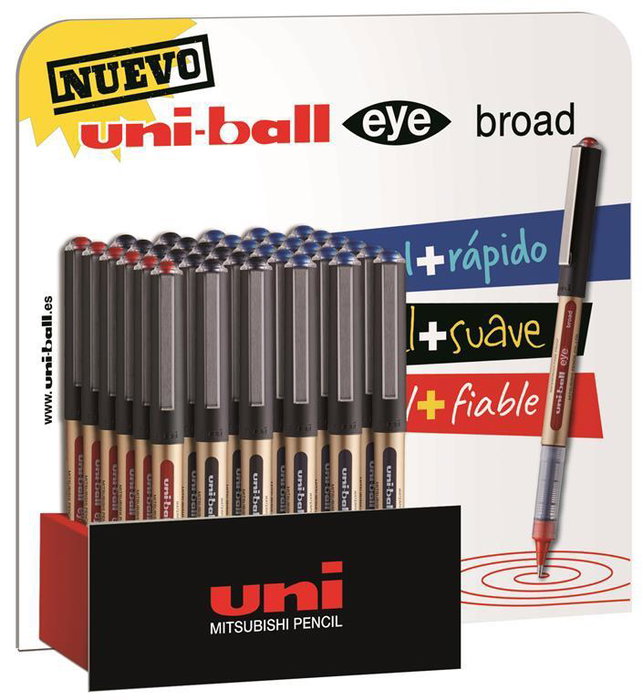 Uniball expositor rollerball eye broad ub-150-10/3d 36 unidades rojo-negro-azul -36u-