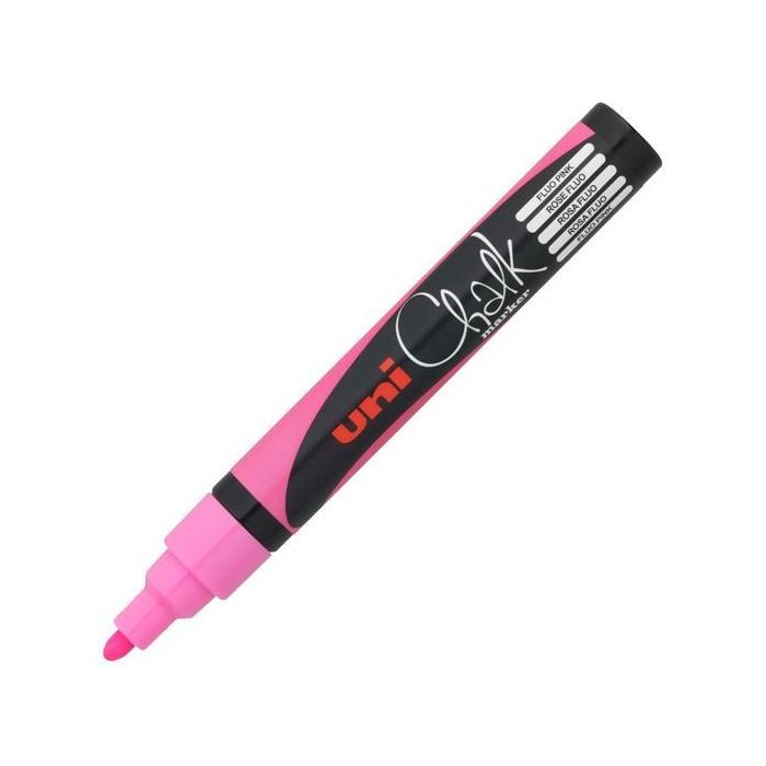 Uni-Ball Marcador Tiza Líquida Chalk PWE-5M Rosa Flúor Borrable Húmedo