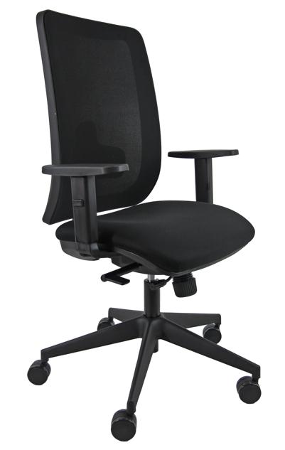 Silla Administrativa RETRO 911 negra. Tejido alta resistencia de 50,000 ciclos Martidale. Mecanismo sincronizado con sistema Translap incluido. Respaldo ajustable en altura. Esponja asiento T25h 6cm. Respaldo de maya con soporte lumbar ajustable en altura. Uso recomendado 8h apta para personas de hasta 130kg. Reposabrazos ajustables en altura inlcuidos. Base negra de 63cm de diámetro con ruedas de 50mm de nylon. Medidas: altura total: 106-118cm. altura del asiento: 42-54cm. ancho del asiento: 50cm. profundidad del asiento 46-51cm. altura del respaldo 61cm. ancho del respaldo 48cm. Cumple con normativa EN1335