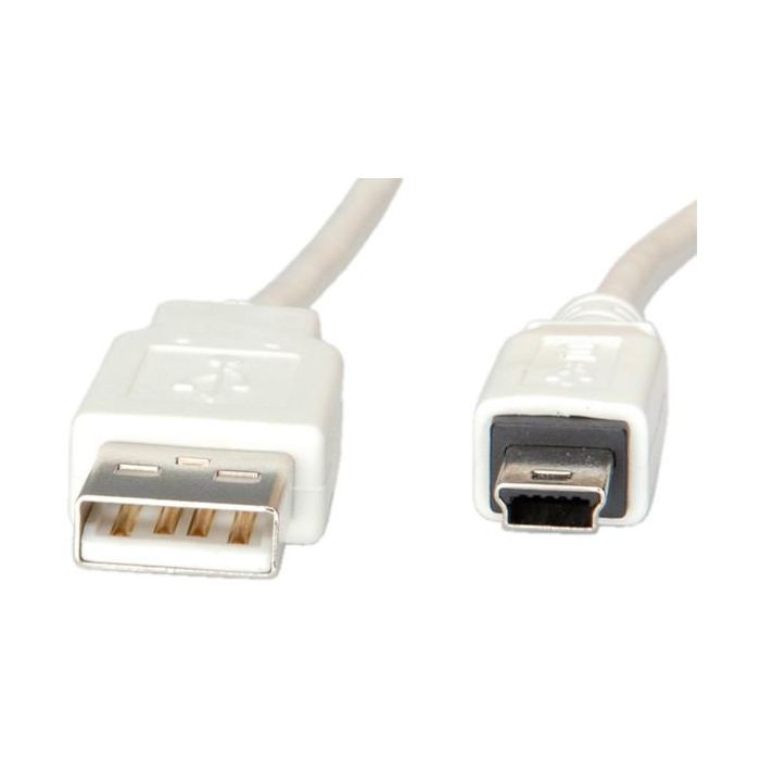 VALUE 11.99.8708, 0,8 m, USB A, Mini-USB B, USB 2.0, Macho/Macho, Blanco