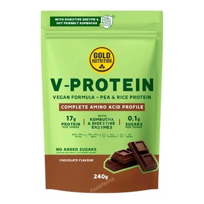 GoldNutrition V-Protein Chocolate 240Gr - Proteína Vegana de Guisante y Arroz sin Azúcares Añadidos, con Bromelina para Digestión