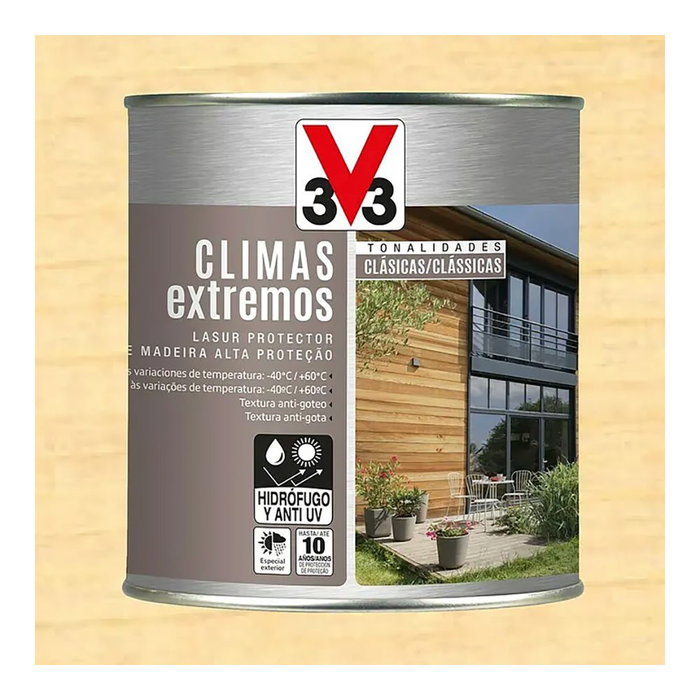 Aceite climas extremos, teca, para todo tipo de muebles de jardín. la fórmula contiene 88% de carbono de origen biológico sobre el carbono total. nutre la madera y la protege de ponerse grisácea. alta resistencia contra agua, rayos uv y grasa. efecto perla. aplicación: con brocha o rodillo de pelo corto 3-5 mm. dejar secar 2 h para una segunda capa y 24 h para secado completo. rendimiento: 750 ml ±9 m²