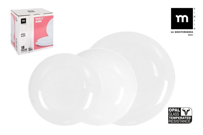 La Mediterranea - Vajilla 18 Piezas Red Opal de la Colección Whom con Platos de 26.5 cm, 23 cm y 19 cm (2 Unidades)