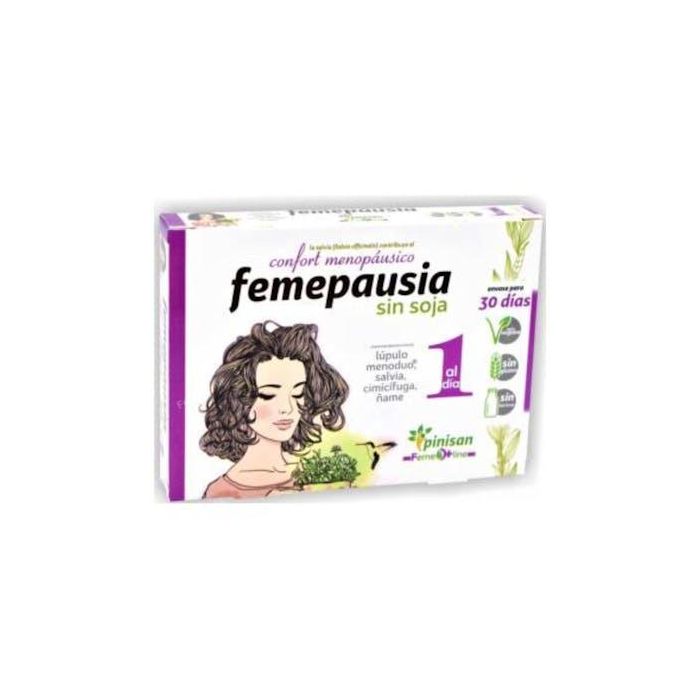 PINISAN Femepausia 30 Cap. Cimicífuga Lúpulo Ñame para Menopausia Sofocos Irritabilidad Vegano Sin Gluten Lactosa