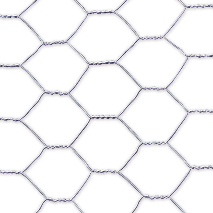 Malla metalica de triple torsion galvanizada (gallinera) cuadro: 19x0,7mm / 0,5x10m estructura en forma hexagonal, color gris.
