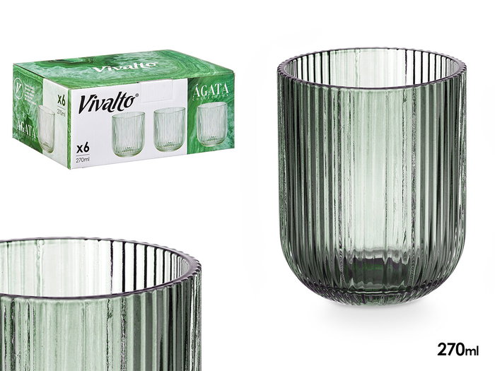 Vivalto Vaso Bajo Verde Musgo Rayas 270 ml, 7.2x9.3x7.2 cm (Set de 24)