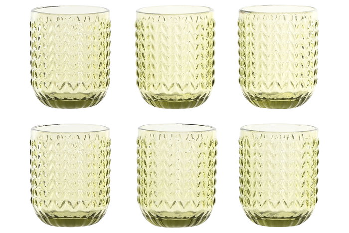 DKD Home Decor Set de 6 Vasos Verdes Colección Espiga Garbo 24 7.5 x 9.5 x 7.5 cm
