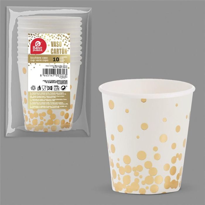 Best Products Vaso cartón 200 cc, blanco/dorado, 10 unidades