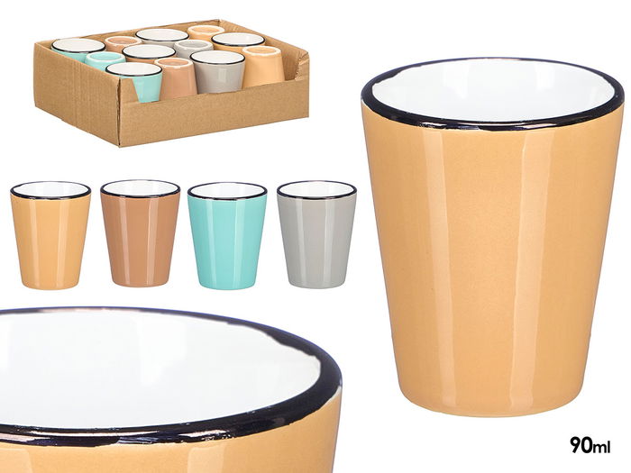 Vessia Vaso Ceramica 90 Ml Borde Negro Colores Claros Surtidos 5.8 x 7 x 5.8 cm (Set de 48)