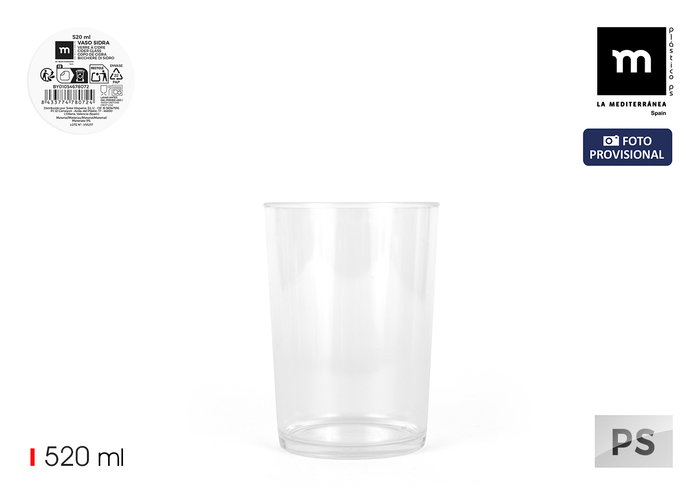 La Mediterranea Vaso Sidra 520Ml 8,7 cm x 12,1 cm x 8,7 cm (12 Unidades)