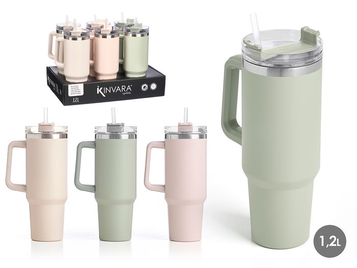 VASO TERMICO 1200ML ASA PAJITA SURTIDOS COLO CLAROS