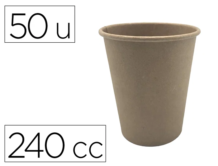 Vaso térmico carton kraft 240cc. 80 mm de diámetro. Bolsa de 50 unidades.