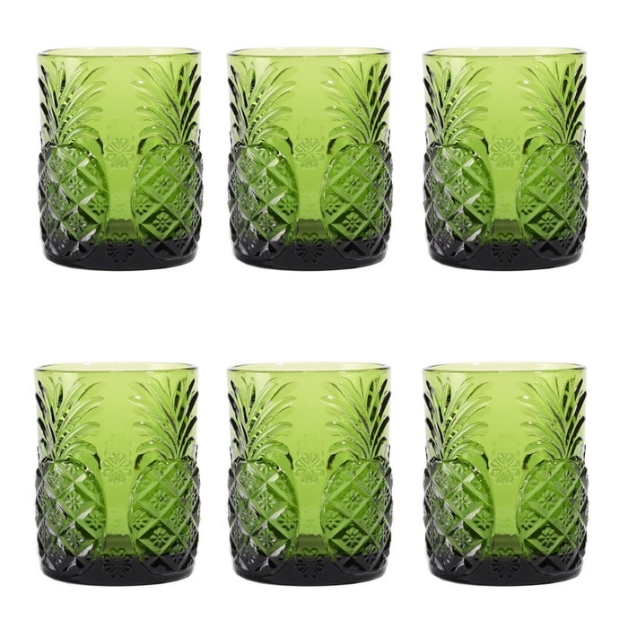 DKD Home Decor Vaso Tropical Verde Cristal 8.5 x 10.5 x 8.5 cm Set de 6 Piezas 300ml