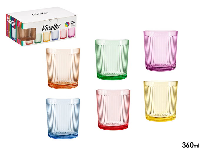 VASO VIDRIO RAYAS 360ML SURT 6 COLORES