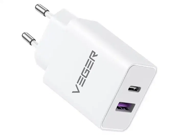 Veger Cargador Enchufe 65W USB-A/USB-C Blanco