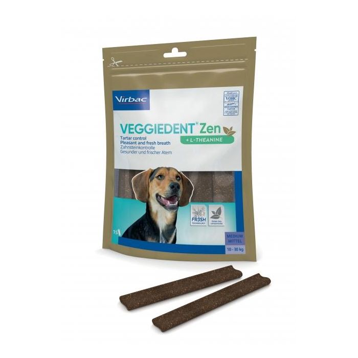 Virbac Veggiedent Zen M Láminas Masticables para Perros Inquietos, Antiplaca y Antisarro, para Perros de 10-30 kg, 15 Unidades