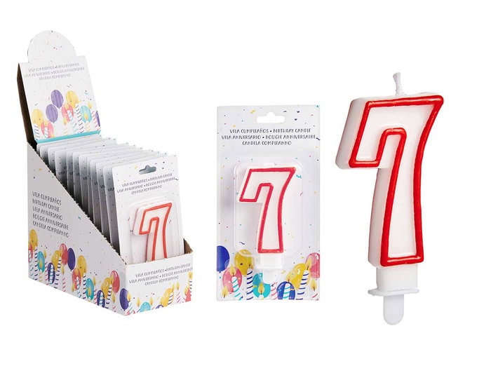 VELA CUMPLEAÑOS NUM 7 BLANCA BORDE ROJO