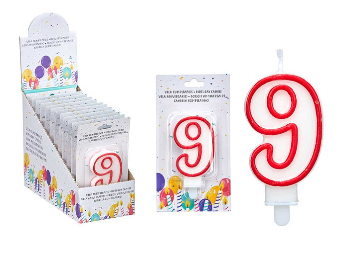 VELA CUMPLEAÑOS NUM 9 BLANCA BORDE ROJO
