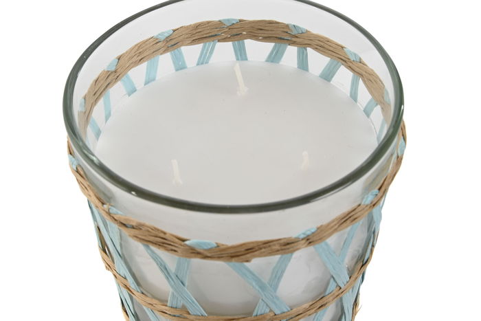 DKD Home Decor Vela Mediterraneo Azul Celeste Natural Fibra Cristal Cera Parafina 13.5 x 12.5 x 13.5 cm