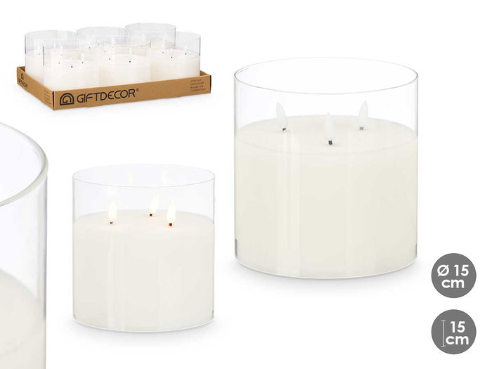 Giftdecor Vela Led 3 Luces en Vaso de Cristal 15x15x15 cm (Set de 6)