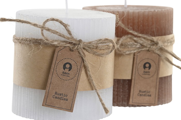 DKD Home Decor Vela Navidad Alpina Blanco Marron 7 x 7 x 7 cm (12 Unidades)