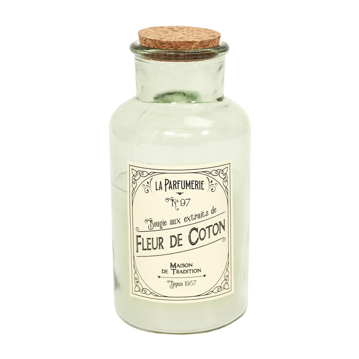 Ver todas las marcasHome Deco Factory Vela Perfumada Apothicaire Flor de Algodón Ámbar Almizcle Blanco Botella Vidrio Tapón Corcho 17 cm