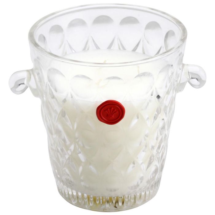 - Vela perfumada con aroma de higos en una cubitera de vidrio. Al finalizar la vela, se le da un nuevo uso al recipiente que la contiene.