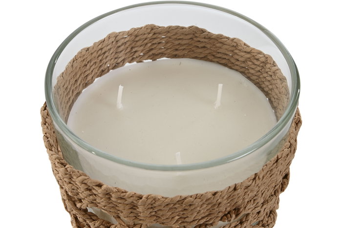 DKD Home Decor Vela Perfumada Mediterraneo 430gr, Cristal, Colores Natural y Blanco, 13.5 x 13 x 12.5 cm