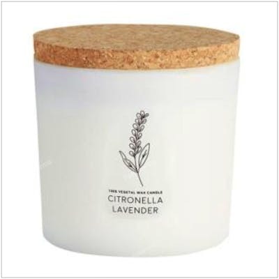 Cerabella Vela Citcorv Citronela-Lavanda Tarro Blanco Cristal Corcho Cera Soja Antimosquitos 10X10cm