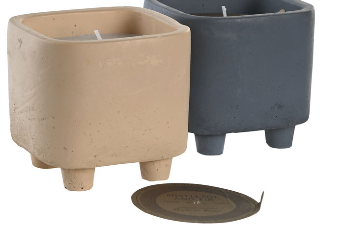 DKD Home Decor Vela 12 Unidades Beige Azul Cemento y Cera Parafina 9 x 9 x 9 cm