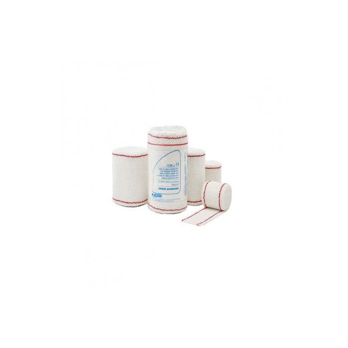 - Tejido elástico longitudinalmente 98% de algodón y 2% lycra color natural con líneas laterales rojas. No se deshilachan, antideslizantes y afines a la piel. Libres de látex. Indicada para vendajes de soporte, fijación y compresión media