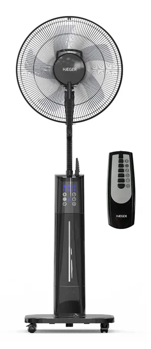 Haeger HF-18R.002A Ventilador con Humidificador Negro - 45 cm, 3 Velocidades, Control Táctil e Inalámbrico, Oscilación 90°, Temporizador, Capacidad 2L