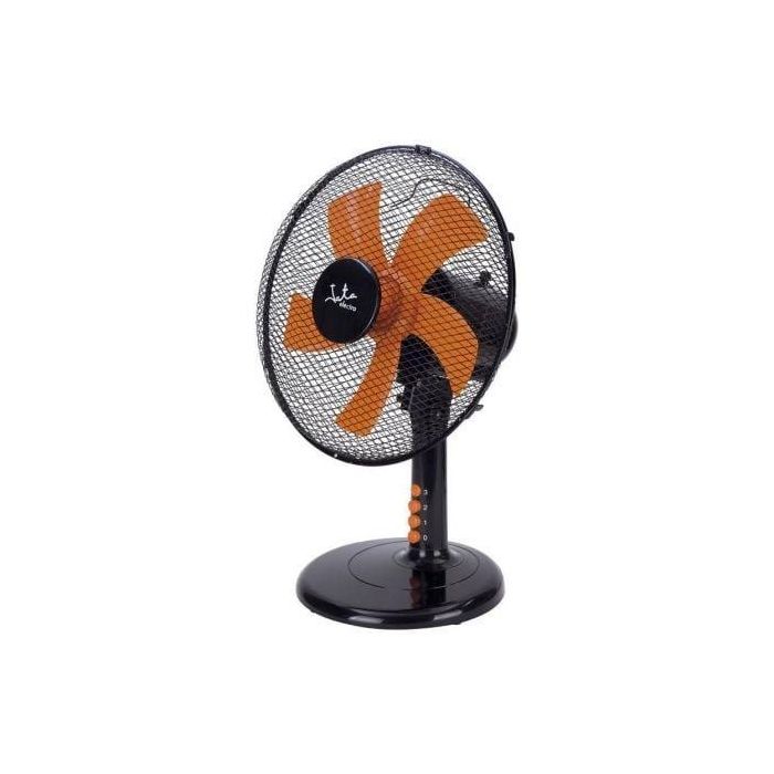 El ventilador de mesa de Jata tiene 3 velocidades diferentes. Su altura es de 53 cm y el cabezal se puede inclinar para lograr un gran rendimiento. Lleva rejilla de metal protectora, tanto en su parte delantera como trasera.