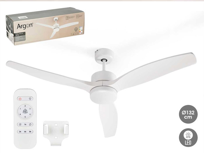 Argon Ventilador de Techo con Luz, 3 Aspas, Blanco, 40W, Motor DC, Mando a Distancia, 116x45x116 cm