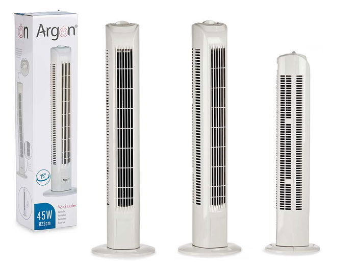 Ventilador de Torre Argon 45W, 19.3x79.5x23 cm, Blanco, 3 Velocidades, Giro 180°