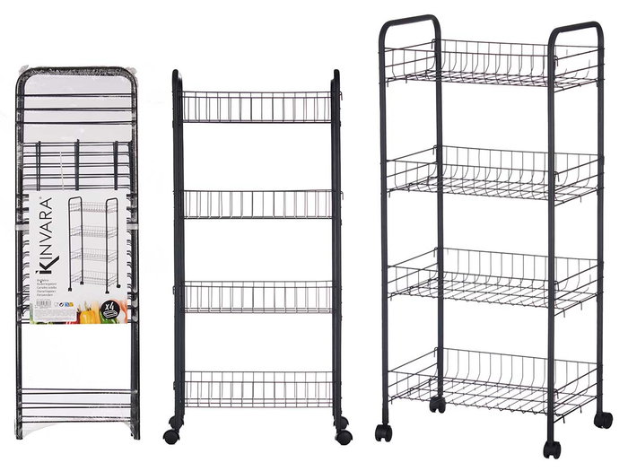 VERDULERO 4 PISOS METALICO NEGRO RUEDAS