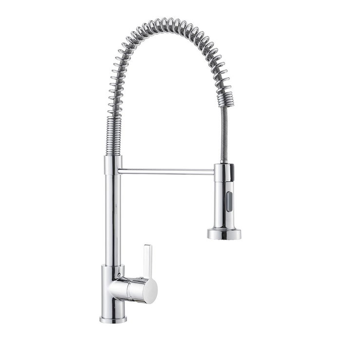 Verhal Serie Pantón - Grifo Monomando de Cocina, Caño Alto Giratorio con Mango Extensible de 2 Funciones, Cromado, Incluye Conexiones